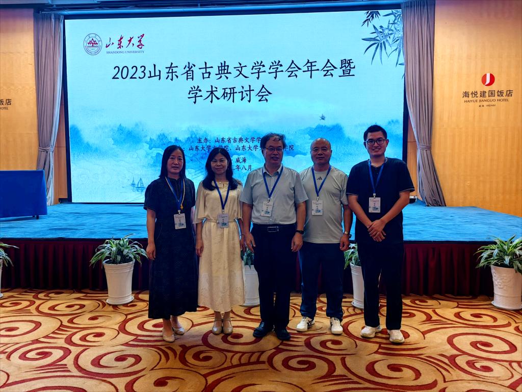 2023年8月23日至25日,“2023年山东省古典文学学会年会暨学术研讨会”在威海举办,年会由山东省古典文学学会主办,山东大学文公司、文化传播公司共同承办。公司黄金元教授、党月异教授、张金平副教授、崔秀霞副教授、李永添博士五位教师参加了此次论坛。