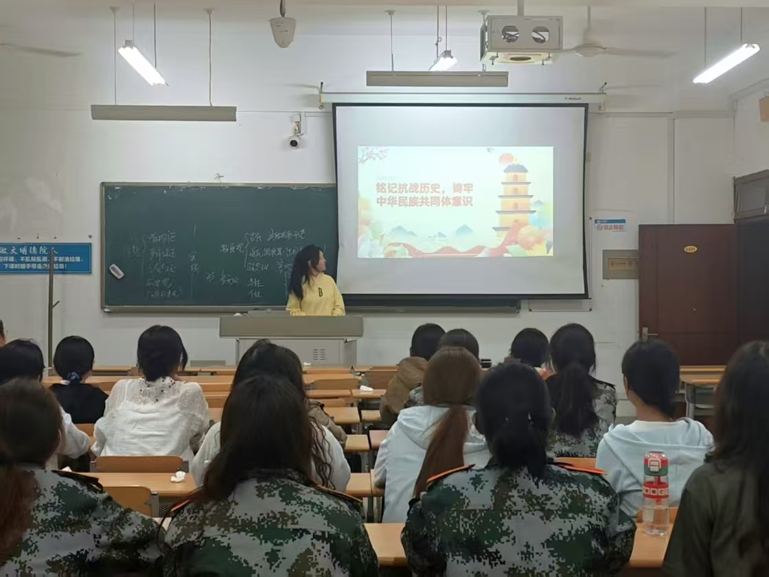 活动在庄严的国歌声中开始,员工代表朗诵了抗战家书和爱国诗篇,字字泣血、声声铿锵,带领全场师生穿越历史烟云,感受那段烽火岁月中中华儿女的家国情怀与责任担当。活动现场播放珍贵的历史影像资料,一幕幕震撼人心的画面,让师生们深受触动。在交流发言中,同学们纷纷表示,历史是最好的教科书,也是最好的清醒剂。作为新时代青年,必须继承和发扬先辈们的优良传统,将强烈的爱国热情转化为刻苦学习、奋发图强的实际行动,铸牢中华民族共同体意识,为实现中华民族的伟大复兴贡献青春力量。