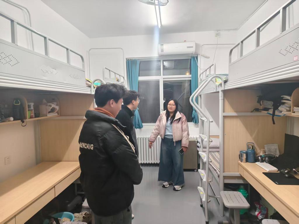 走访过程中,辅导员老师走进多个宿舍,询问大家日常生活、学习进度及遇到的困难。在与同学们的亲切交谈中,老师耐心倾听大家关于学业规划、校园生活的想法与困惑,并结合自身经验给出建议。老师提醒同学们注意宿舍安全,不要使用违规电器、明火设备,做到人走断电,电子设备不要在床上充电,严禁在宿舍内吸烟,保持宿舍卫生等。也希望同学们增强自我保护意识,保持卫生整洁,舍友间要互帮互助,共同营造和谐融洽的宿舍氛围。