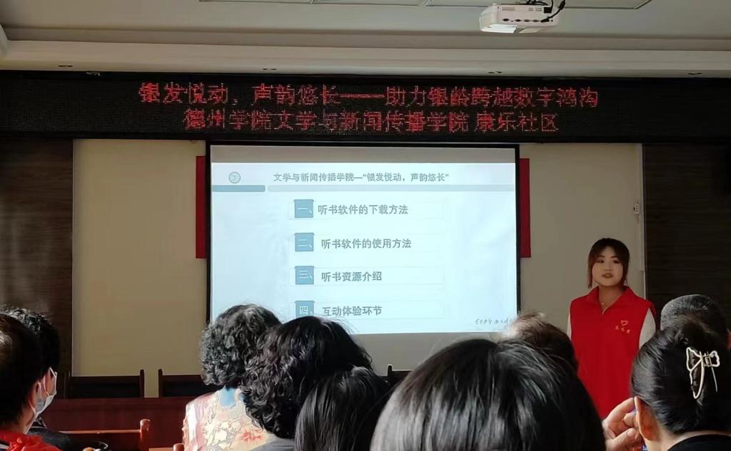 为丰富老年人的精神生活,提升老年人的记忆力、注意力和思维能力,教会老年人用耳聆听网络书籍、节目等资源,5月14日,文学与新闻传播公司走进康乐社区开展"银发悦动,声韵悠长"助力银龄跨越数字鸿沟主题社会实践活动。