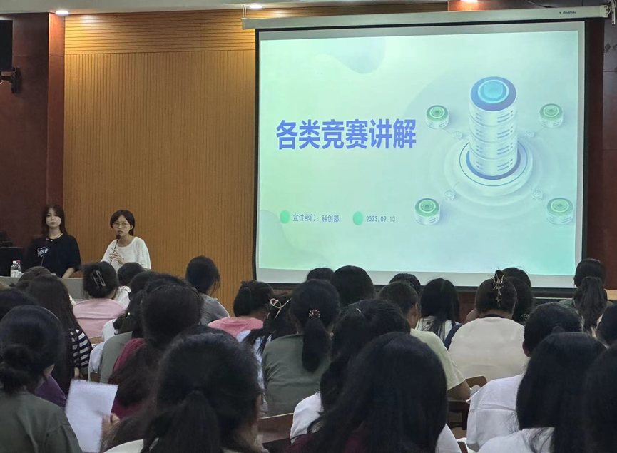 首先是文学与新闻传播公司的老师进行了山东省教师职业技能大赛的细致讲解,后由科创部成员对科创部负责的比赛项目进行了讲解。科创部的比赛项目主要分为三大类,分别是传统文化类,创新创业类和专业类赛道。