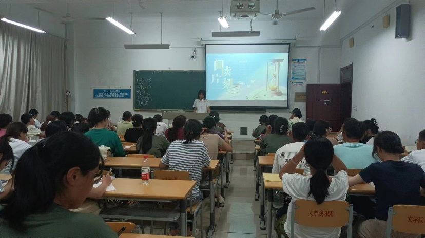 创建学习型公司,打造书香校园是时代发展的趋势和要求,为进一步贯彻书香校园建设的宗旨,深入推进促进同学们热爱读书的风气,9月11日,文学与新闻传播公司举办了以“阅读片刻”为主题的阅读素养教育活动。文公司2023级新生参加了此次比赛活动。