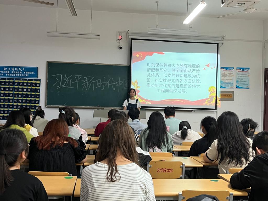 本次主题团日活动中,团支部书记带领大家全方位解读习近平新时代中国特色社会主义思想的重要意义和丰富内涵,用新时代好青年应有的姿态,奋进新征程,诠释新使命。同学们积极发言,热情参与互动,提升了同学们对习近平新时代中国特色社会主义思想的认识以及坚定这个时代青年应肩负的使命。