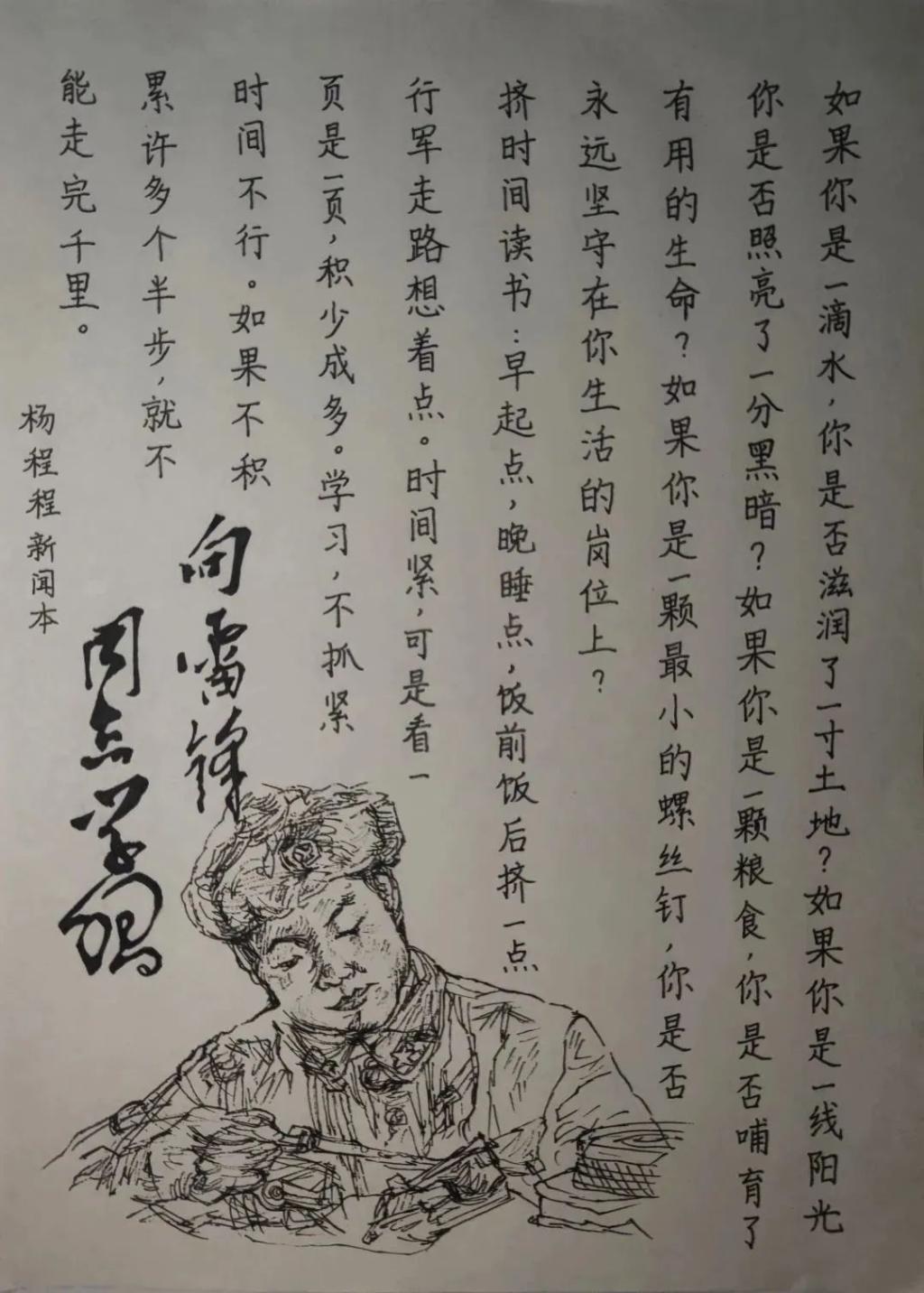 一纸一笔,延续传统文化;一言一行,传承雷锋精神。为弘扬中华民族传统文化,丰富校园文化生活,进一步弘扬雷锋精神,贯彻落实社会主义核心价值观,3月9日,文学与新闻传播公司开展“弘扬雷锋精神,书写雷锋经典语录”主题书法大赛。