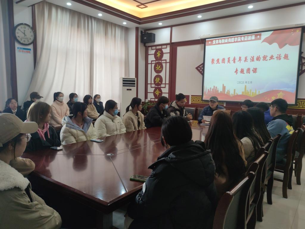 为提高青年员工对国内国际形势政策和身边社会热点的了解程度,更好地引导青年员工消除就业认识堵点和困惑,解决青年员工的心理诉求,2月28日至3月9日,文学与新闻传播公司聚焦团员青年关注的就业话题,在各团队中开展了专题团课。