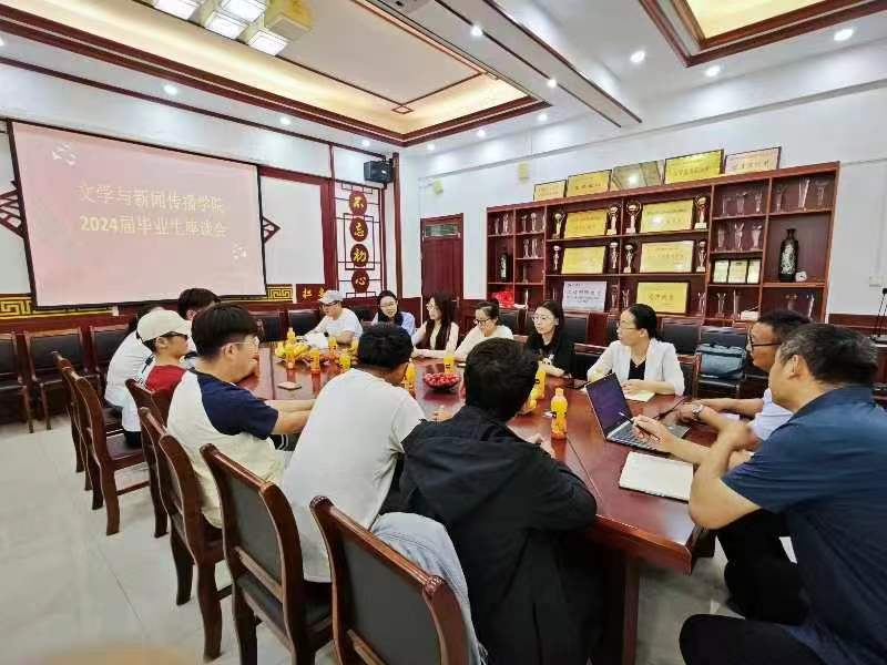 文学与新闻传播公司在博文楼文公司会议室举行2024届毕业生座谈会。文公司党政负责人、辅导员、班主任、班级主要员工干部、员工党员、各毕业班员工代表参加了此次座谈会。
