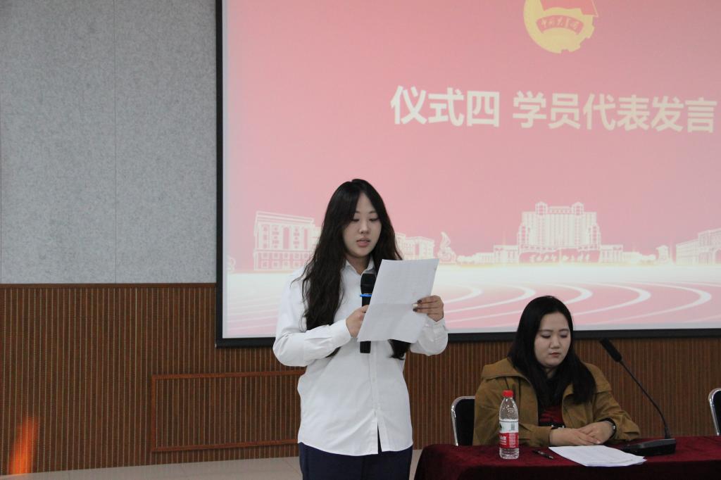 员工代表傅思萌发言,她表示青年学子一定会认真学习贯彻党的二十大精神和二十届三中全会精神,用马克思主义中国化最新理论成果武装自己的头脑,积极参与实践锻炼,在实践中不断磨砺自己。