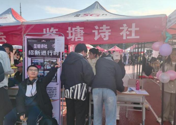 活动现场,每个社团各展所长,展示自己的特色与魅力。鉴塘诗社开展了诗词接龙和答非所问游戏,游戏规则简单而不失温馨,让大家在欢声笑语中感受诗词的魅力,散发着浓郁的文化气息;摄影摄像协会设置了现场体验区,在协会成员的指导下,一起学习如何调整焦距、曝光等参数,捕捉美好的瞬间,这种互动式的体验让同学们对摄影有了更具体的认识;柳湖吟诵社播放着抑扬顿挫、饱含情感的吟诵音频,社团的成员们积极宣传吟诵的历史渊源和技巧,带领大家现场吟诵,仿佛带着同学们穿越时空,领略到传统文化的深厚韵味。
