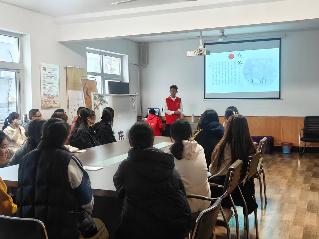 志愿者首先以临近立冬的时间开场,进而引出后续对立冬节气的介绍。后续便分别从立冬的由来、习俗、养生三个方面对立冬节气进行了生动且详尽的介绍。在活动过程中,志愿者结合丰富多彩的PPT图文及视频等形式来配合讲解,既活跃了现场气氛,也让社区居民对立冬这一节气的历史文化内涵和养生知识理解的更加透彻,而其中志愿者对于养生知识的讲解更是赢得了社区居民的阵阵掌声,社区居民都纷纷表示受益匪浅。
