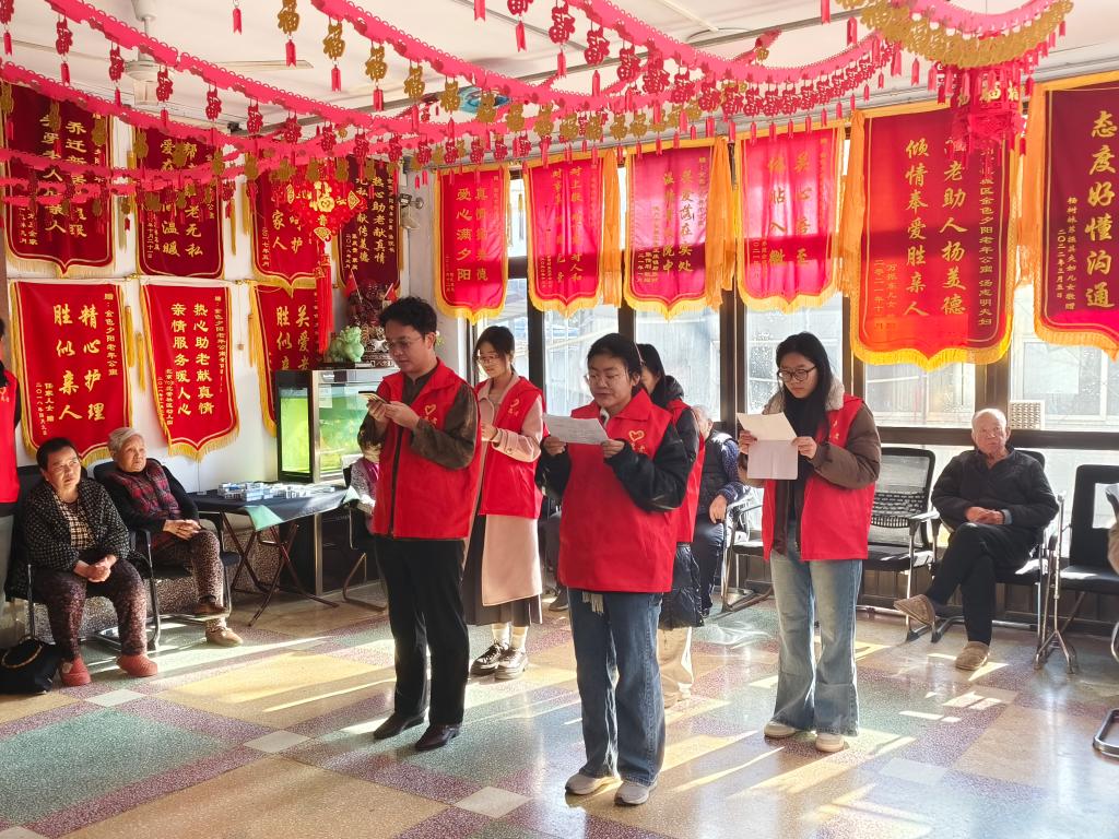活动以诗歌《这是一首最美的抒情诗》朗诵拉开序幕,员工用抑扬顿挫的声线演绎岁月沉淀的诗意。随后的经典民歌联唱环节,《花桥流水》《东方红》等旋律引发全场共鸣,多位老人随节拍轻声应和。公司特别设计的"文史养生课"将健康知识与生活日常结合,讲解春季膳食搭配时融入老人们平时的饮食习惯,让老人们在会心一笑中掌握养生技巧。互动环节中,00后志愿者与耄耋长者展开"跨世纪对话"。志愿者们围坐在老人们身边,关切地询问老人们的身体状况,仔细聆听他们的生活需求,并饶有兴致地与老人们下起了象棋。现场气氛轻松愉快,欢声笑语此起彼伏,志愿者与老人们其乐融融,宛如一家人。
