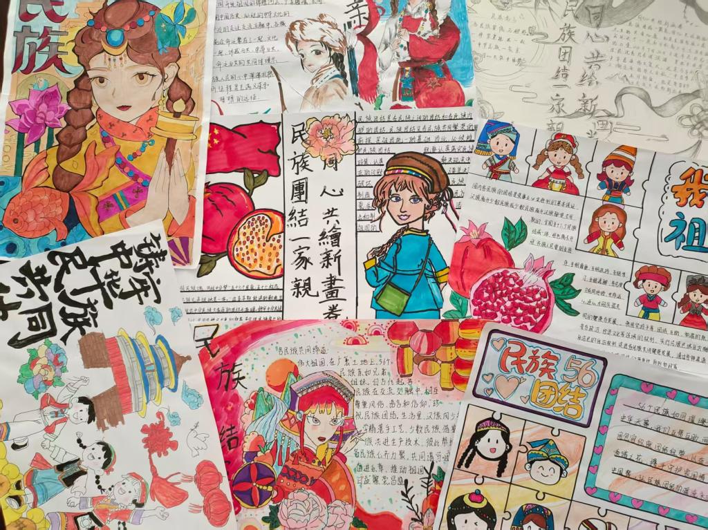 活动期间,同学们踊跃参与,围绕主题积极搜集资料、精心设计版面,通过图文并茂的形式展现各民族的历史文化与风俗习惯。参赛作品题材丰富、风格多样,既有对传统服饰、节庆习俗的细腻描绘,也有对民族团结故事的生动讲述。一幅幅生动的手抄报作品,不仅体现出同学们的创意与动手能力,也传递出对民族团结的理解和认同。