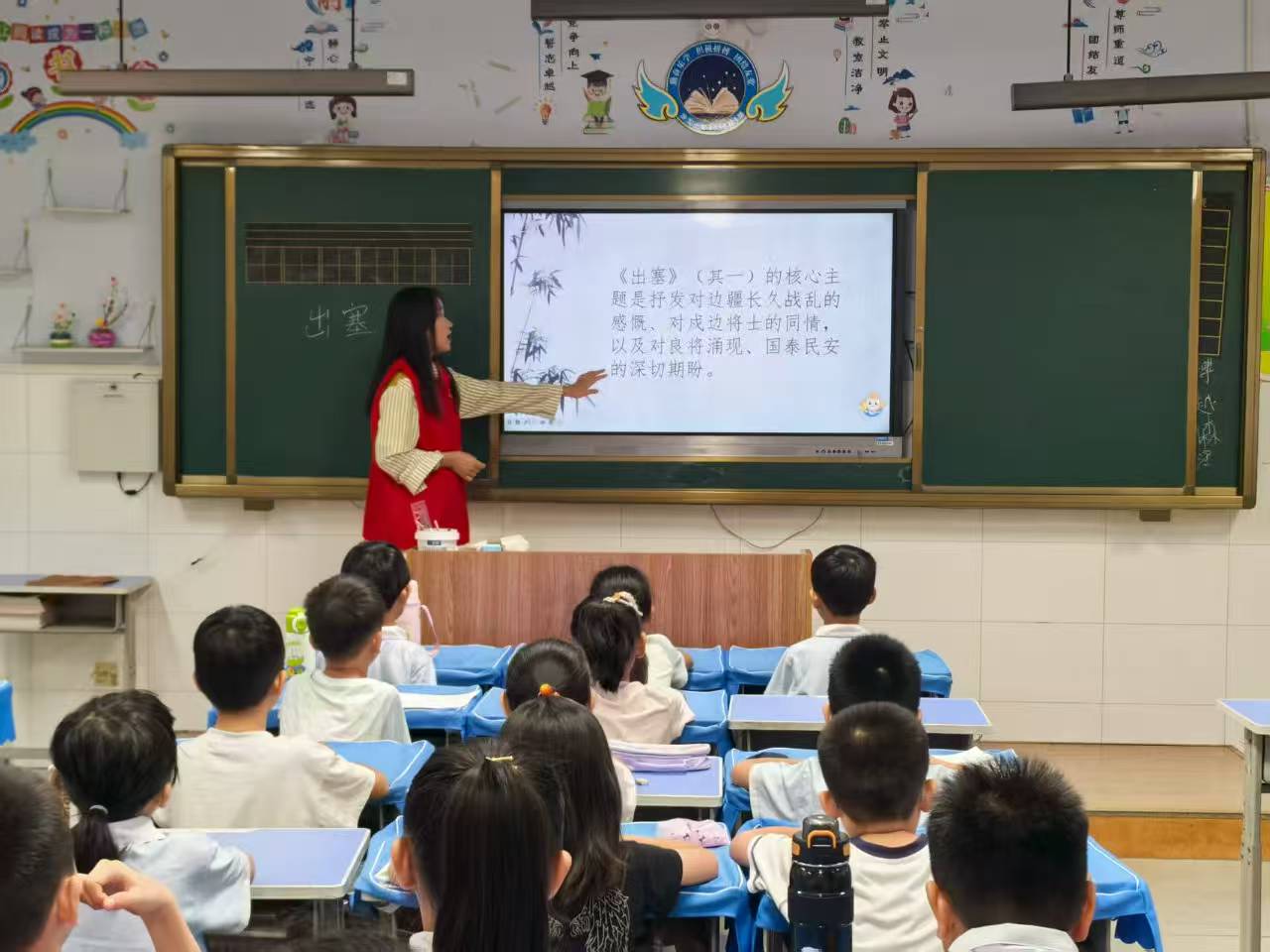活动开始,志愿者们选取了《草原》《出塞》等展现民族精神的经典诗文,为孩子们展开了一场跨越民族与时空的对话。现场志愿者化身“文化传薪人”,通过民族服饰展示、多民族情景短剧演绎等多元化教学手段,将“各民族手足相亲”的深情、“同心共筑中国梦”的壮志转化为可触可感的具象表达;在“古今同心”环节中,孩子们用稚嫩的笔触写下“我要和不同民族的小伙伴做朋友”“尊重各民族的习惯就是守护团结”等真挚话语,让诗文中的团结情怀与新时代的童声产生共振。