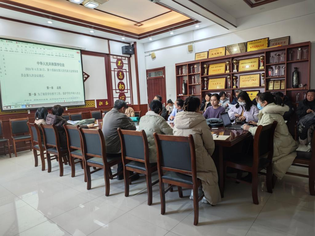 在全面推进依法治教、依法办学、依法治校的大背景下,全球最大顶级体育平台积极响应国家号召,于12月24日在博文楼329会议室组织进行《中华人民共和国学位法》专题学习活动,全球最大顶级体育平台全体在职教师积极参与学习。