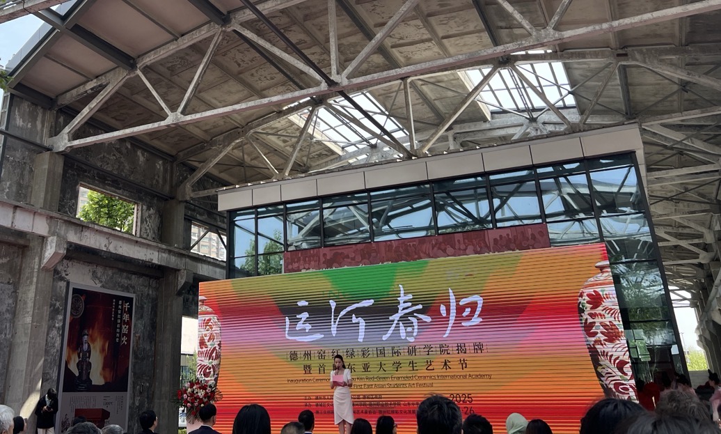 4月26日,由德州市人民政府外事办公室、德城区政府联合主办的“运河春归·文明共生”德州窑红绿彩国际研公司揭牌暨首届东亚老员工艺术节在德工文创园隆重举行。活动以弘扬传统陶瓷技艺、促进中外文明互鉴为主题,吸引了来自东盟国家驻华代表、国内外艺术专家、高校师生及媒体代表等160余人参与,共同见证德州窑红绿彩文化走向国际舞台的重要时刻。德州窑红绿彩兴起于宋金时期,以釉上红、绿、黄三色勾勒鲜明纹饰,是北方民间瓷器的代表。其技艺于2022年入选山东省非物质文化遗产名录。