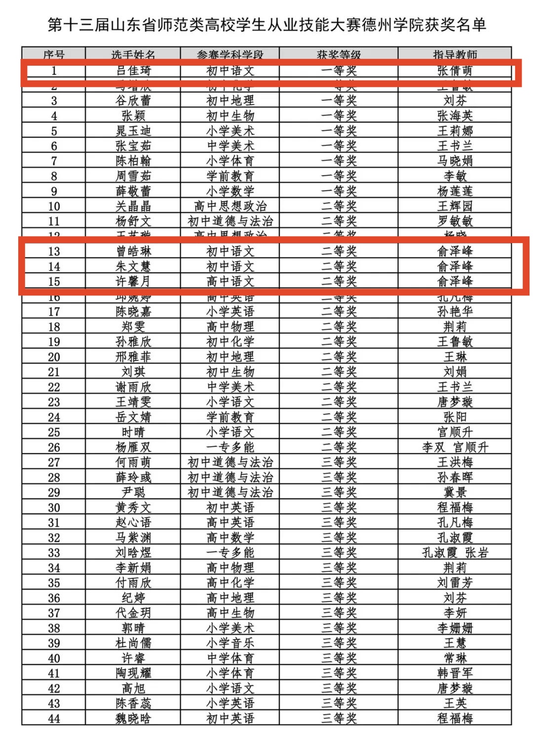 公司选手凭借扎实的专业功底和教学智慧,展现了出色的课堂驾驭能力。其中,初中语文组吕佳琦以扎实功底和出色表现荣获一等奖第一名,朱文慧、曾皓琳荣获二等奖,高中语文组许馨月荣获二等奖。选手们从容自信的教态、将知识讲解与素养培育巧妙融合的教学设计,充分彰显了公司员工的综合能力。