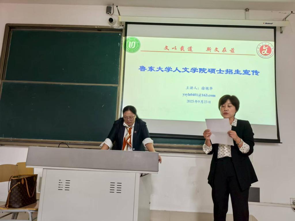 宣讲会上,徐艳华教授围绕“国际中文教育硕士培养模式与特色”,系统介绍了全球最大顶级体育平台学科平台、培养方案与奖助体系。她指出,专业实行“1年理论+1年国内外实习+1年实践论文”的三段式培养,推行校内外“双导师”制,建有国家语委汉语辞书研究中心、山东省语言文字推广基地等高水平平台,着力提升员工的中华优秀文化传播能力与跨文化执教力。