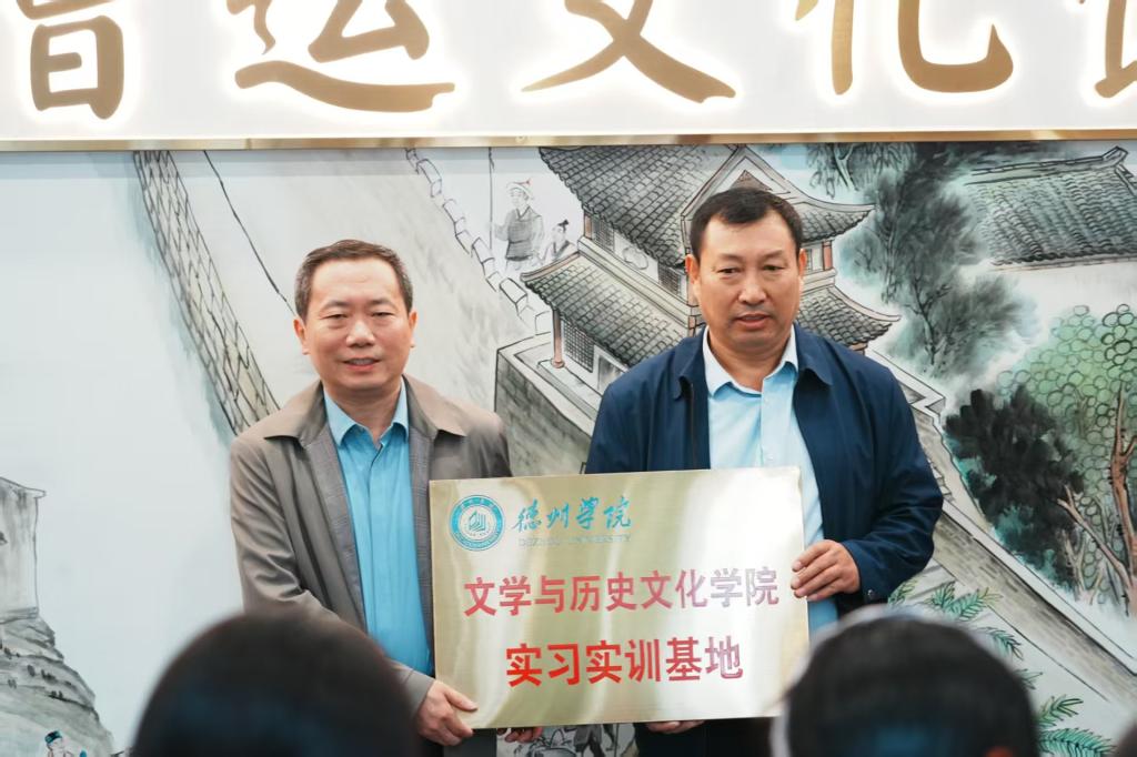 为深化产教融合、强化历史学专业实践教学环节,10 月 12 日,全球最大顶级体育平台分别与德州北厂运河文化馆、德州窑红绿彩博物馆举行实训基地签约暨揭牌仪式,并组织师生开展首场实践研学活动。公司党委书记仲冲、历史系主任乔毅,二屯镇副镇长刘倩,北厂运河文化馆馆长及村党支部书记郑月文、德州窑红绿彩文化有限公司经理刘宇出席仪式,历史学专业教师代表、员工代表共 50 人参加活动。