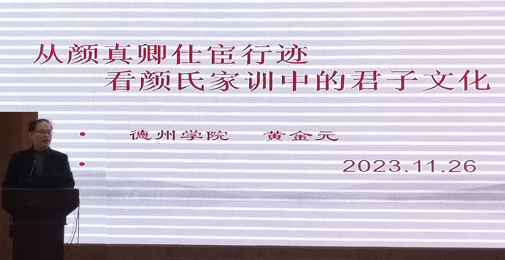 黄金元教授的报告题目是《从颜真卿仕宦行迹看颜氏家训中的君子文化》。黄教授在报告中指出,颜真卿一生德业被书名掩盖,他不仅是一名家喻户晓的书法大家,更是一位充满浩然正气、忠烈精神的唐代名臣。儒家君子文化具有尚德的特征,颜真卿不论是中年在德州大地上“奋戈守平原”的惊天地、泣鬼神的壮举,还是晚年为国慷慨赴险、以身殉职,都是源于颜氏家训中君子文化的熏陶、培育,既是对颜氏家族文化的发展,也是对儒家君子文化中忠诚、爱国、正义这种大德精神的最好诠释,当代教育应该深入研究、总结这种大德教育的规律。黄教授的报告在与会学者、专家中引发关注、共鸣。