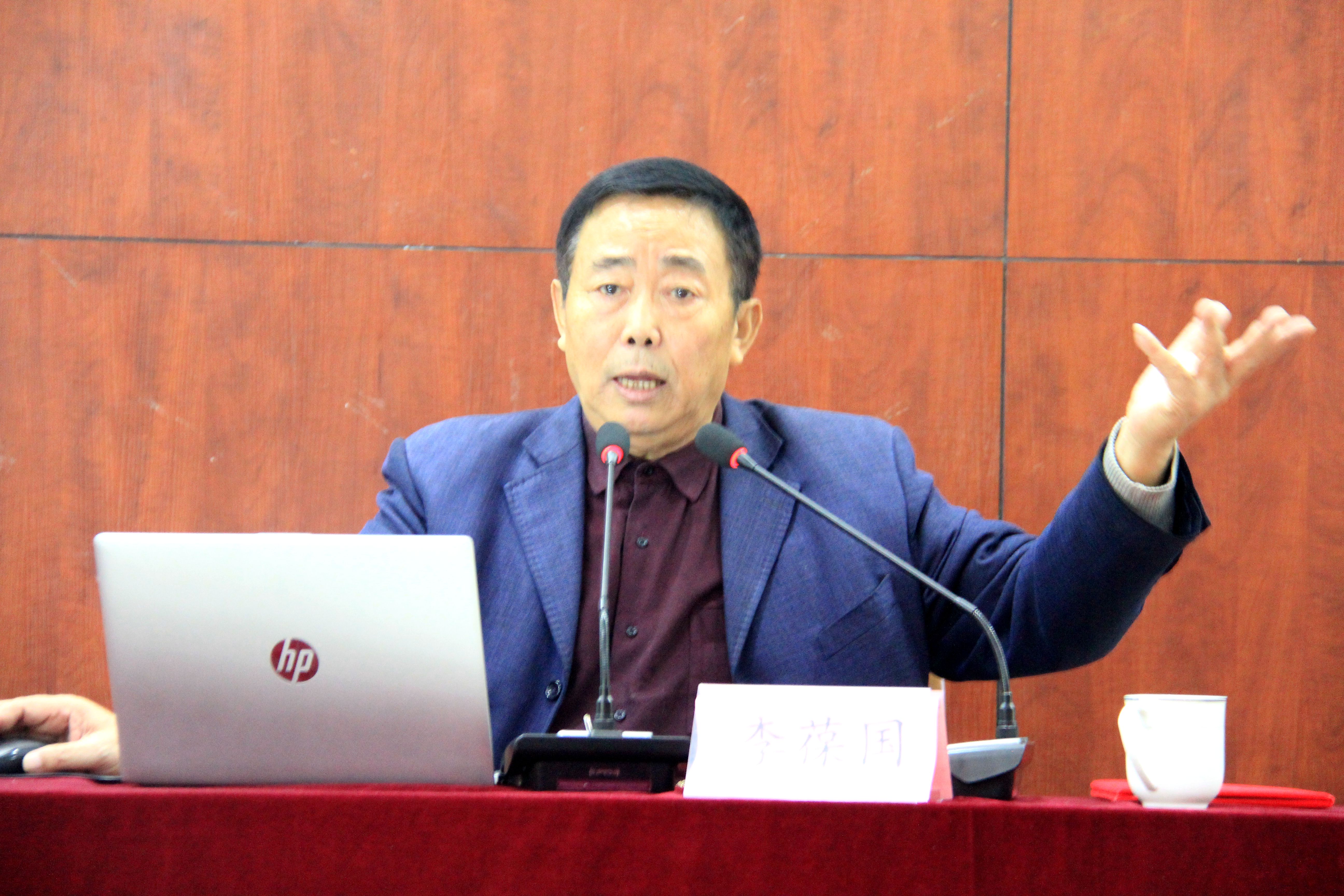 李葆国先生以《中国当代诗词的审美追求》为题,给现场听众呈现了一场精彩的学术报告。报告站在当代中国诗坛古体诗词创作的宏观视角,分两个层面,阐述了诗词界存在的问题和当代诗词应具有的审美追求,并结合全国诗词竞赛佳作,指出古体诗词创作,要避免拟古现象,诗词要合为时而作,要有家国情怀,要有符合時代发展要求的慷慨阳刚之气骨。指出诗要有风骨,必須先是詩人有风骨,风骨就是我们思想教育的无私奉献,就是儒家思想的家国情怀。报告深入分析了诗词创作中的语境、情境、心境和意境问题,以及诗词的体、志、气、韵要求。主张今后的诗词理论研讨和创作应明确当代诗词的审美追求方向,远离平仄对仗、新韵旧韵等枝节之争,直奔诗词意境的创新和风骨的打造,早出精品,多出精品,拥抱伟大的新时代。李先生的报告,视角宏大,引经据典,倡导大家要继承优秀的传统文化,深入伟大的时代生活,既有理论深度和政治高度,又能深入创作实践,给现场古体诗词爱好者以很大的启发与指导。