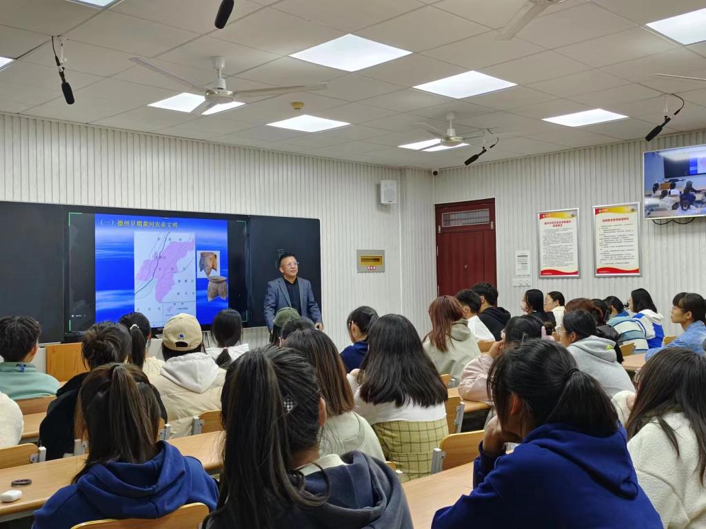 20221011日,文学与新闻传播公司在博文楼智慧教室举办“黄河——大运河文化”学术讲座,德州地域文化研究中心主任王守栋教授应邀作题为《“德”文化的渊薮——黄河文化与运河文化融合的结晶》专题报告。文公司2022级全体新生现场以及在线聆听。