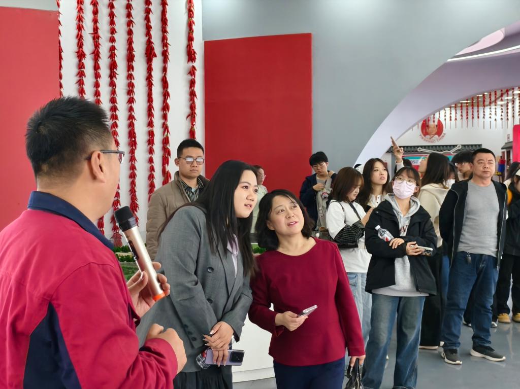 在武城县人社局的引领下,学子们首站抵达中椒英潮辣业发展有限公司。企业负责人详细介绍了辣椒种植、深加工及品牌文化建设情况,员工结合文化产业管理专业优势,就农产品文化IP打造提出建议。随后,学子们前往金信空调设备公司,作为纺织空调领域的佼佼者,金信展示了其先进技术与设备。实地观摩与专业技术人员讲解,让员工们对纺织行业的环境控制、节能技术及智能化应用有了深入理解,对现代制造业的科技水平赞叹不已,立志努力学习,为未来投身此行业打下坚实基础。