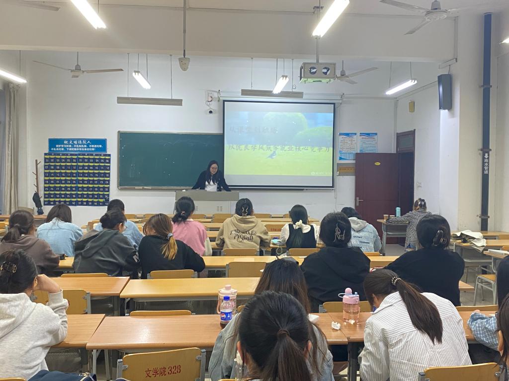 班会伊始,辅导员沙彦君简要介绍了当前就业形势与汉语言文学专业的多元发展方向,强调优良学风是职业发展的基石。随后,6位学长学姐结合自身经历,从不同角度分享经验: