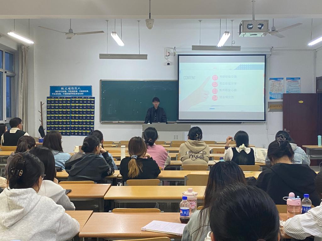 考研代表冯同学从备考计划、院校选择到心态调整,详细剖析“跨专业上岸”的关键;国企HR实习生李同学揭秘简历筛选内幕,强调“专业技能+实践经历”的双重重要性;新媒体行业就职的董同学以自身案例证明“文学功底+跨界技能”的职场适配性;考公成功者王同学聚焦行测申论技巧,提醒同学们“早积累、多练笔”;自主创业的韩同学鼓励同学“敢想敢试”,并分享如何将人文素养转化为商业思维;已成为中学教师的刘同学从职业理想、师德师风、专业素养三个方面分享了自己的职业规划。